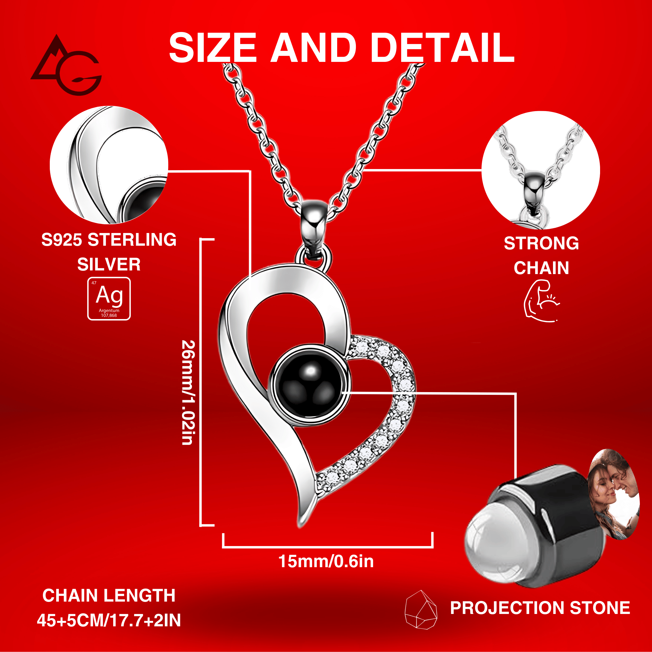 La caratteristica più innovativa della Collana Cuore Splendente è la gemma di proiezione integrata. Grazie alla sua alta definizione, proietta con assoluta chiarezza qualsiasi immagine carichi su di essa — ogni dettaglio è visibile. Che si tratti di te e della persona amata, di un momento catturato della vita o di un messaggio, questa collana rende i tuoi ricordi belli ed eterni.