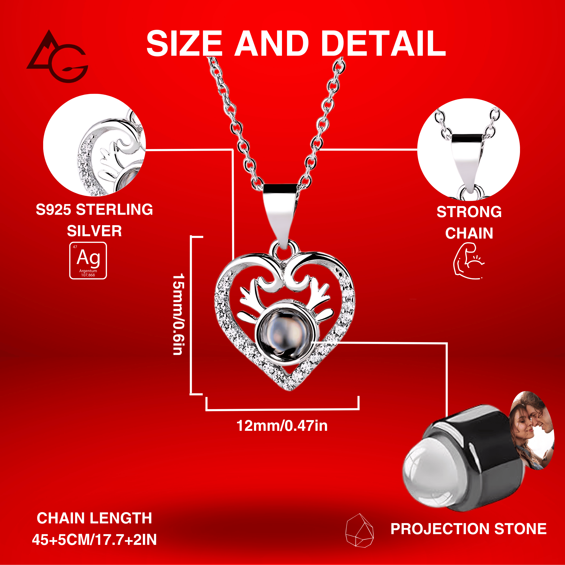 La Collana Cuore delle Corna non riguarda solo l'eleganza dei gioielli; parla di amore e natura. Combinando un design morbido di cuore e corna, realizzata in argento sterling S925 lussuoso e con tecnologia di proiezione ad alta definizione, crea un accessorio incredibile per preservare i vostri momenti preziosi per tutta la vita. Ogni volta che la indosserete, penserete all'amore e alla bellezza che rappresenta.
