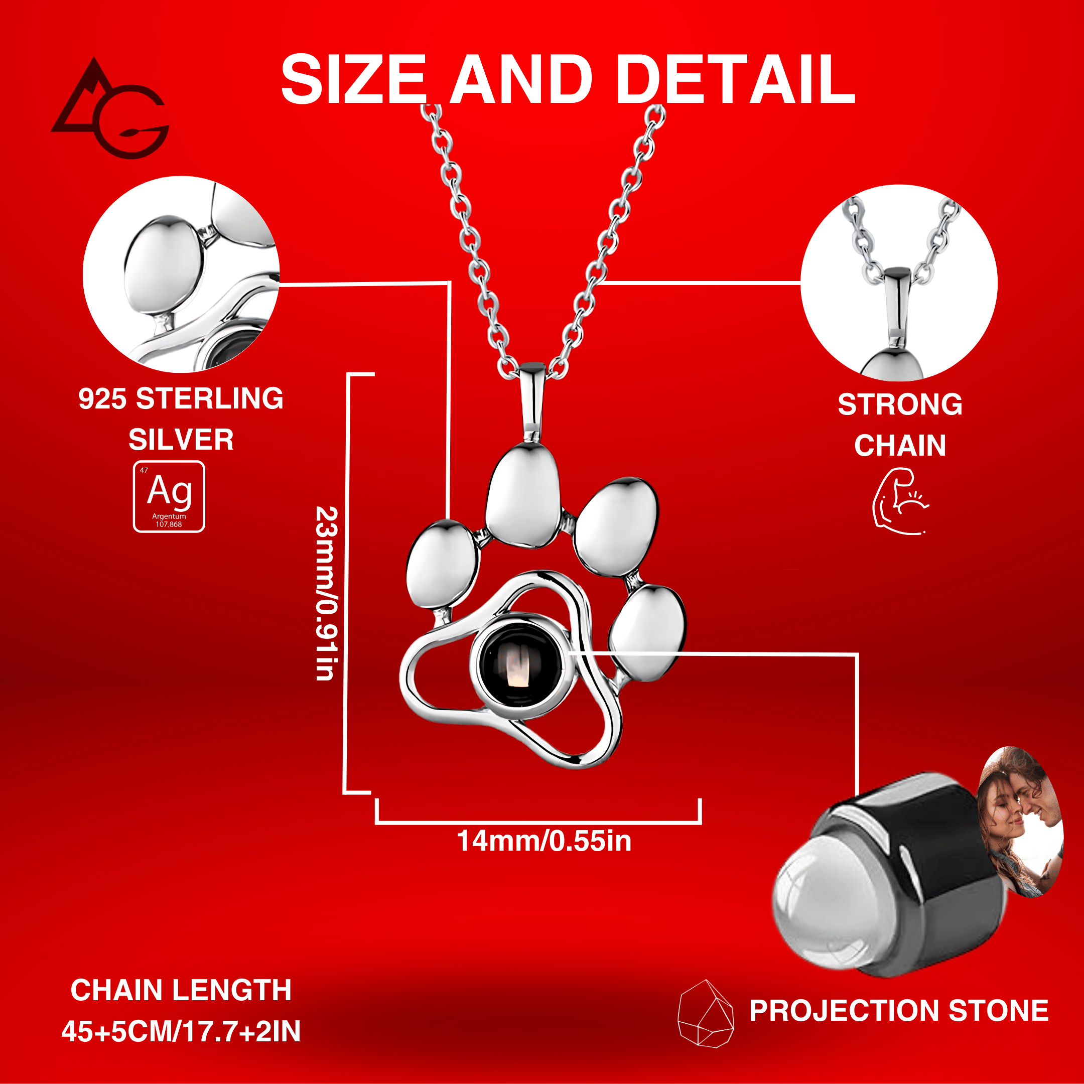 Al centro di questa Collana Impronta di Zampa c'è un proiettore di pietra che funziona con tecnologia ad alta definizione. Grazie a questo, può proiettare le immagini che hai caricato con chiarezza e precisione, in modo che ogni pixel dell'immagine sia visibile. Da un momento speciale alla tua foto preferita del tuo animale domestico, la proiezione ad alta definizione mantiene il ricordo vivo e sempre nel palmo della tua mano.