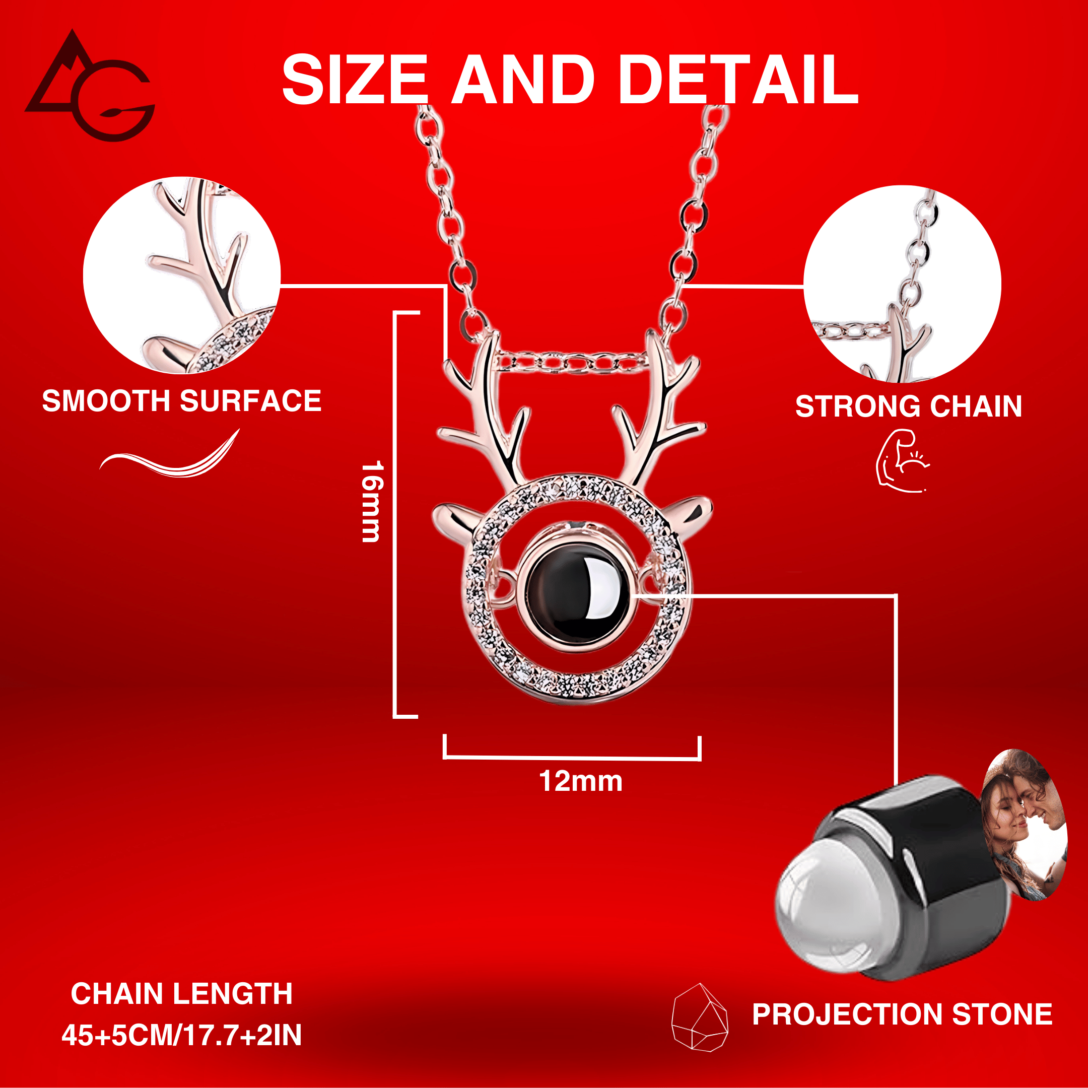 Questa è una delle caratteristiche più notevoli della Collana Raggio di Cervo. Il gemma di proiezione incorporata nella collana consente di caricare e proiettare le vostre foto preferite con chiarezza cristallina. Ogni dettaglio del vostro ricordo più caro sarà mostrato così vividamente, rendendo questa collana un prezioso ricordo personale.