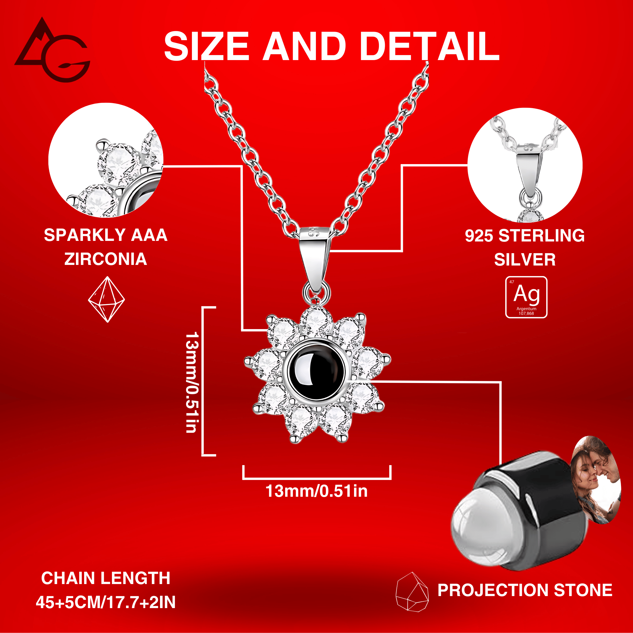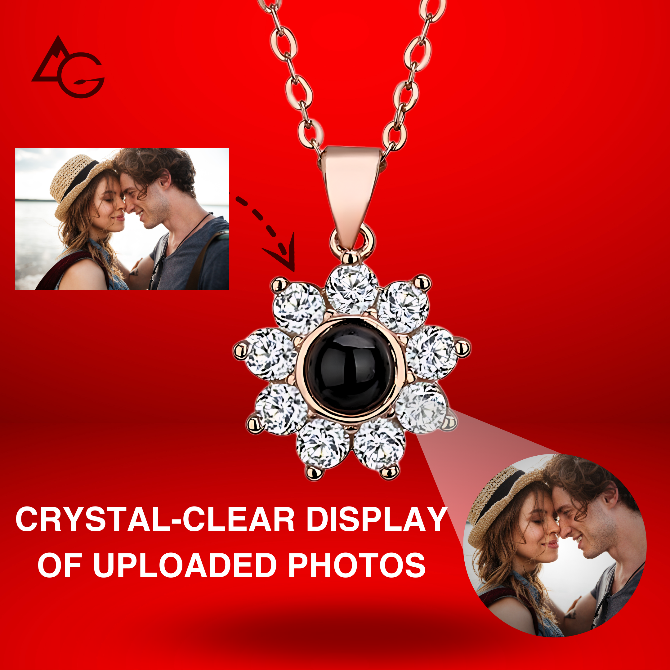 Questo è ciò che distingue l'intera collana. All'interno del ciondolo è incastonata una pietra di proiezione che può proiettare immagini o messaggi in alta definizione dei tuoi ricordi più preziosi. Con la Collana Raggio di Sole, porterai sempre con te i tuoi beni più cari, che si tratti dell'immagine di una persona amata, di un momento speciale catturato, o di una citazione che desideri portare con te in ogni momento. In questo modo, può essere perfetta e personale, proprio come tutti coloro che amano avere qualcosa di bello e sentimentale in un unico gioiello.