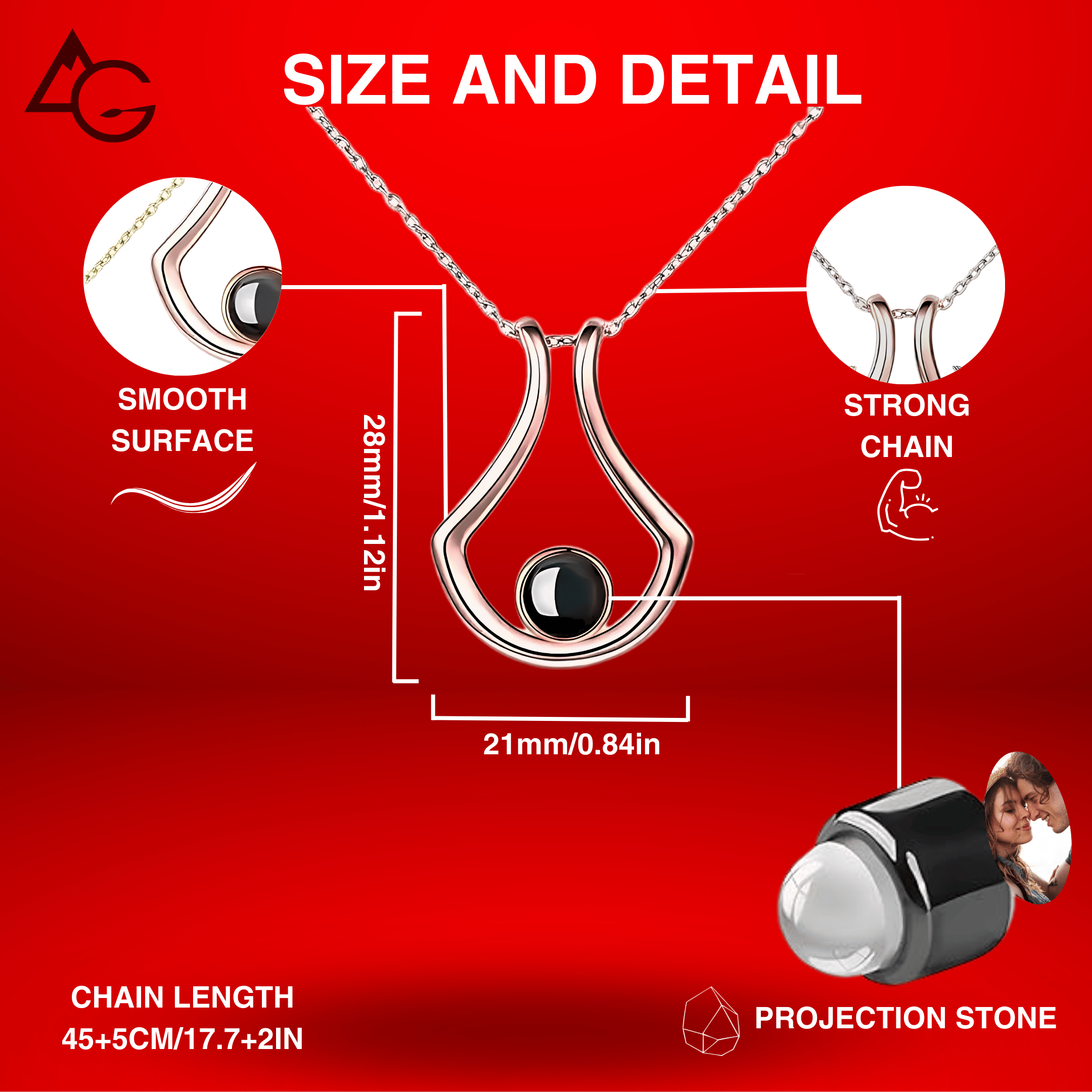 Ciò che rende la Collana Splendore U davvero speciale è la sua tecnologia di proiezione. Al centro del gemma del pendente si trova una pietra progettata per proiettare immagini o messaggi ad alta definizione. Questo ti permette di portare con te un ricordo caro, che sia una foto di una persona amata, un momento prezioso o una citazione significativa.
